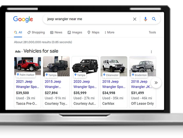 With VLAs, your inventory appears at the top of Google when buyers search for vehicles.